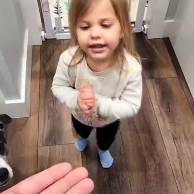 A father holds Hershey Kisses out to his young daughter and asks if she will tell her mother, and the girl says "yes." He tells her that she needs to say "no," and she says "yes" again.