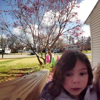 "Adorable Door Duo" A young girl and her younger sister ring a doorbell, then the older girl asks through the camera if any young girls live at the house who could play with them. Security footage.