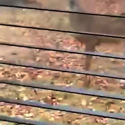 A senior woman tells an ostrich to leave her alone at a drive through safari, then one of them puts its head into the car and bites her chest.