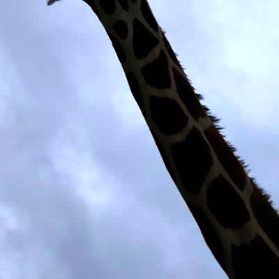 At a zoo, a young girl and her grandmother feed a giraffe. As the giraffe sticks its large tongue out as the girl winces and squirms in the woman's arms.