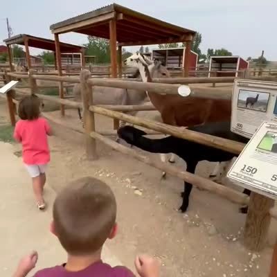 A teen girl at a petting zoo tells a llama that its teeth are ugly. The llama spits in her face.