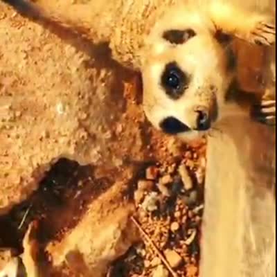 A woman records a video of meerkats at a petting zoo and one of them jumps up and attacks the camera.