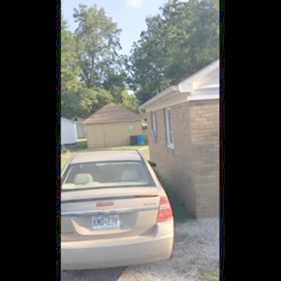 A mule bites a woman's butt while she stands in front of an outdoor stable. Featured talent cleared only (the woman who gets bit by the mule).