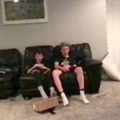 A teen boy in the flatbed of a truck stands between the two foldable halves of a ping pong table to move it. It falls and he is sandwiched between the two pieces of wood. Security Footage.
