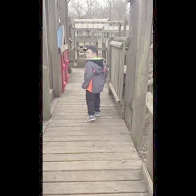 Young boy in the shower talks to himself and then screams when he sees the camera. Short tail.