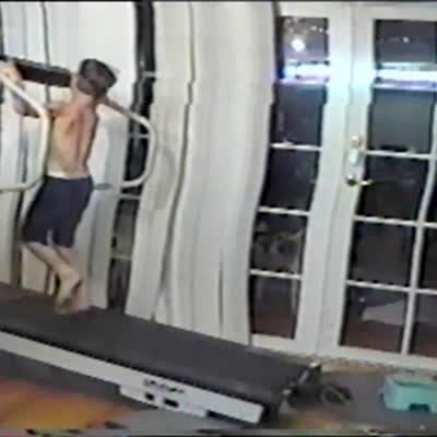 Man fills kiddie pool with water, puts it at the bottom of a slide and covers it with leaves. Boy runs down the slide and jumps in the pool, thinking it's just a leaf pile, he screams. Practical joke. Family describes the plan.
