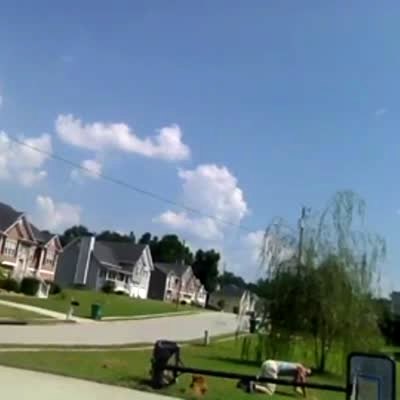 A man is upset by a large moth calling it a bird and trying to kill it with a broom. He gets mad at the man behind camera for not helping saying, "I'm not playing this game" and hitting the camera.