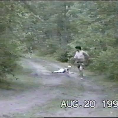 Little boy runs down road, man jumps out of bushes and scares him, boy falls