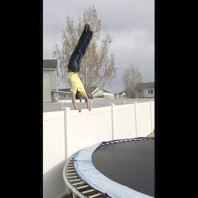 Slow motion video of a man trying to do a flip over a fence but he lands on the fence.