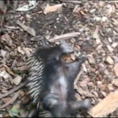 Echidna / anteater puts paws on the side of its outdoor cage then falls over backwards. Happens repeatedly.