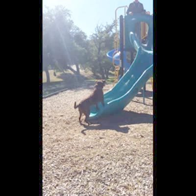 A young boy jumps off of a swing, lands on a toy picnic table, and hits his head at :16.