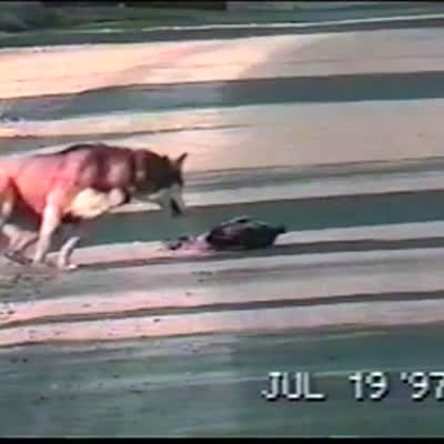 Duck gets attacked / chased by dog - so the duck drops and "plays dead"