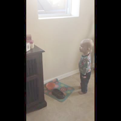 A tot boy attempts to tell Alexa to "play elmo" his mother tells him that they don't have an Alexa.