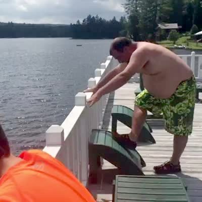 Teen boy jumps from balcony of the house into above ground pool, he hits the side of the pool and falls. Short tail, no recovery. Bonehead.