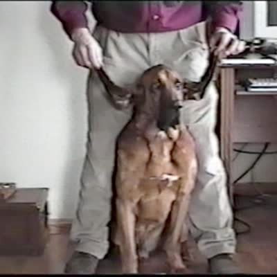 Bassett Hound dog scratches its butt on the back of an office desk & makes funny noises.