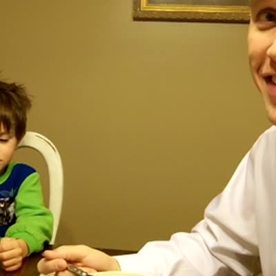 A young boy tells his father "How dare you, you're the worst Dad ever" when he finds out his father froze his cereal with the spoon in the bowl on April Fools Day.