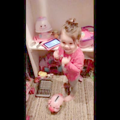 A man counts to ten while he stands in front of a closet his tot daughter hides inside. He says, "Ready or not, here I come" and his daughter replies, "I'm in the closet, daddy. Come and find me". He opens the door and his daughter yells, "You found me!"