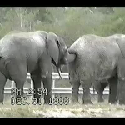 : Elephant sticks trunk up other elephant's butt, eats poop. Gross.