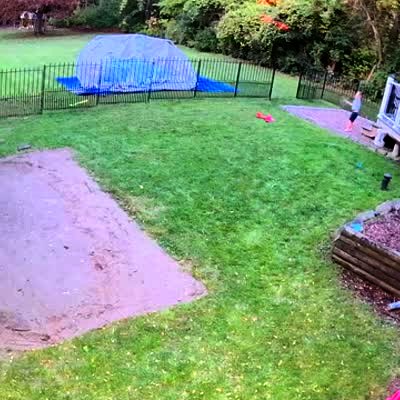 A man in his backyard proposes to his girlfriend. Meanwhile, the woman who holds the camera gets distracted by a raccoon and misses the actual proposal.