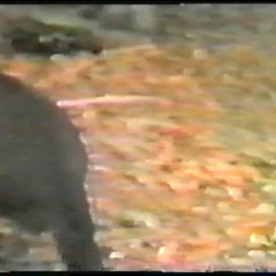 A kangaroo jumps and hits the camera out of a woman's hands in the backyard while she talks to them.