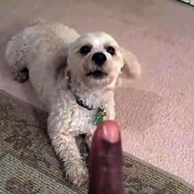 Poodle dog barks the same number of times as man's fingers that are held up.