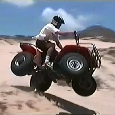Guy on ATV hits dune and flies off of it. Good recovery. This is the 2nd of two clips with this HV number.