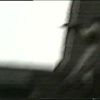 Cat chases toy electric car in circles around track, cat gets dizzy and falls off table onto the floor. Spin. Used in CompuServe 9-95 (CS).