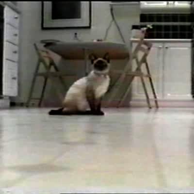 STRING TAIL CAT Cat scared by a string caught on tail - he jumps around wildly