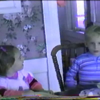 A woman records a video of her kids for a birthday greeting for their dad. The two older girls wish their dad a happy birthday in the beginning and then their younger brother says it on his own at the end. The girls get annoyed because they don't want him to have his own part.