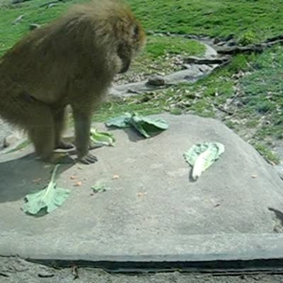 "Befuddled Baboon" A man does card tricks for a baboon at a zoo and the baboon makes surprised faces.