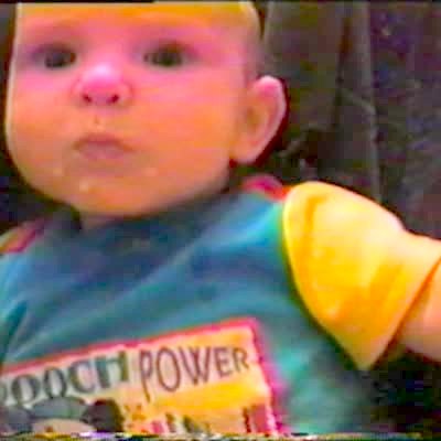 BABY MAKES GROWLING NOISES Baby's first foods - he makes growling noises while eating (he's actually breathing through a snot-filled nose, which explodes)