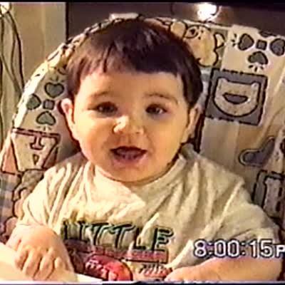 AA: Funny Laughs: Baby boy in high chair laughs funny; almost sounds like he's baa-ing