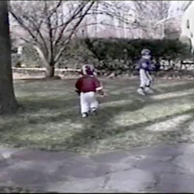 Tot gets beaned on helmet with football when dad throws him a pass