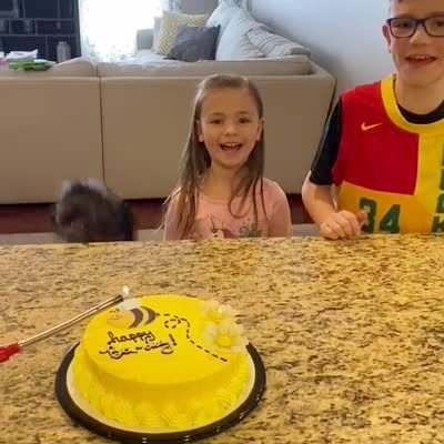 A family sings "Happy Birthday" to a young boy in the kitchen and his younger brother blows on his candles before he does. But the younger brother does not blow hard enough, so it takes a while to do it. The camera turns to reveal the younger brother.