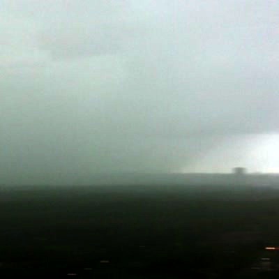 A man films a thunderstorm and records a bolt of lightning that hits right in front of his camera. He runs inside the a house and laughs as he calms himself down.