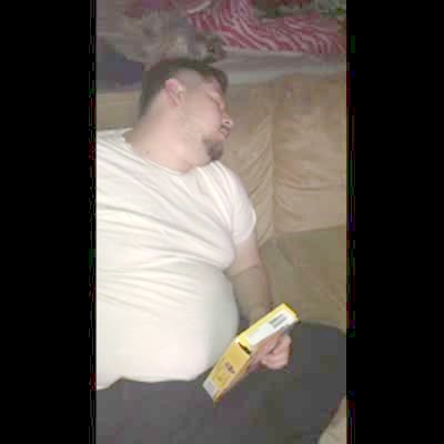 A man sleeps on a sofa and screams when a woman says happy birthday.