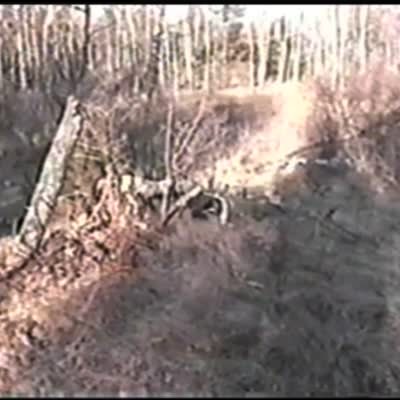 Man jumps onto a tree branch from his motorbike and falls down. He's fine. Bonehead.