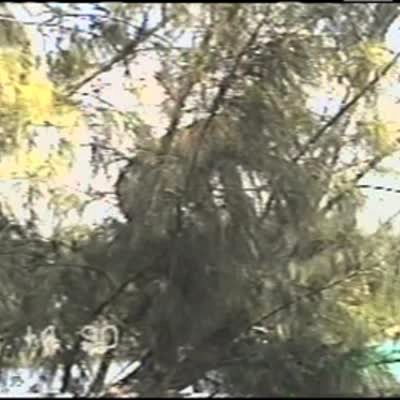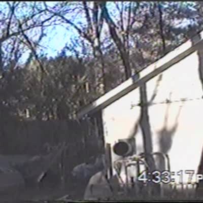 A construction vehicle cuts tree branches in the yard and a large branch falls on the roof of the breezeway and the roof collapses.