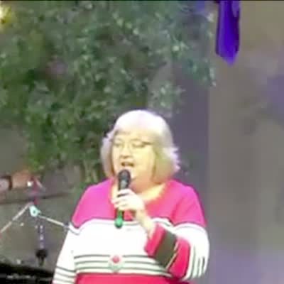 A ficus tree repeatedly falls on a man as he plays the drums for a church performance. He tries to push the tree up as he continues to play the drums.