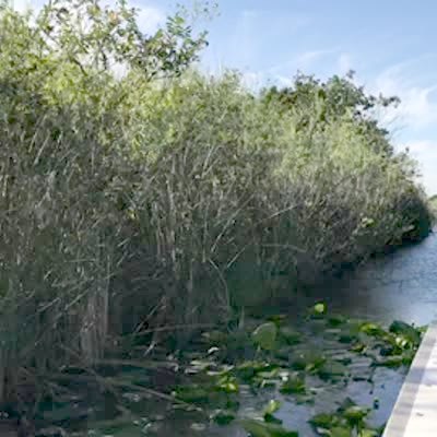A person films off the side of a boat until a tree branch hits the camera.