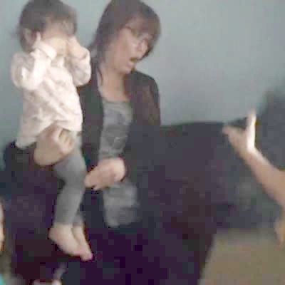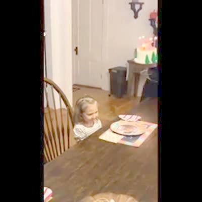 Mom drops birthday cake during the HB song and girl starts crying. Cake seems ok when picked up. Possible set up..