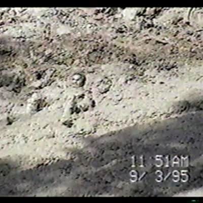 A woman in a Ghillie suit / camouflage suit pops out of a bush and scares three kids after they get off of a school bus.