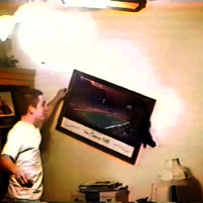 A teen boy attempts a kick flip on his skateboard but the board flies towards the camera/phone and shatters it. It still captures his reaction to the damage. He says "Oh noooo, dude!" Music rights not cleared.