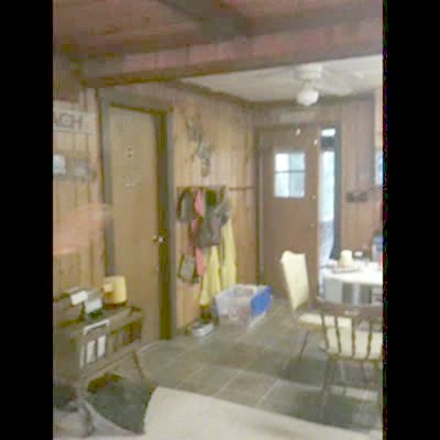 Man tries to capture a black bat that is loose in his cabin, but man gets scared and screams when the bat flies at him. Hard to see bat.
