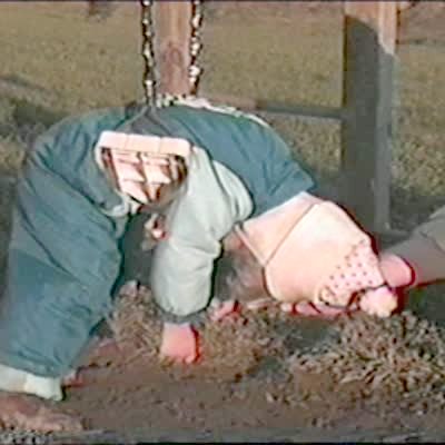 AA: Sleep. Sleeping Swinger, kid is asleep across a swing.