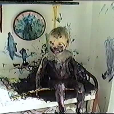 Man changes vent screen in the hallway, another man sticks his hand out of the hole from hiding in the vent. Man gets scared, gives the camera the finger. Practical joke.