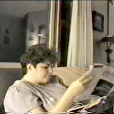 A teen boy holds crutches and hops to go up a flight of stairs outside of his house. He falls down twice while a woman tells him to use the crutches correctly. Security footage.