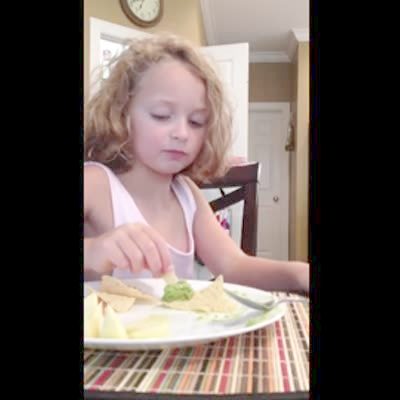 At :31 young girl gets up from meal and walks away. When she comes back and Dad asks she says she went to fart in the hallway.