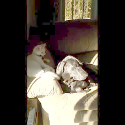 Dogs have huge balls of snow on their ears & body. (added outdoor shots)