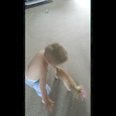 A young boy disappears behind a blanket; then a cat walks out from a doorway. Mind Blowing Magic